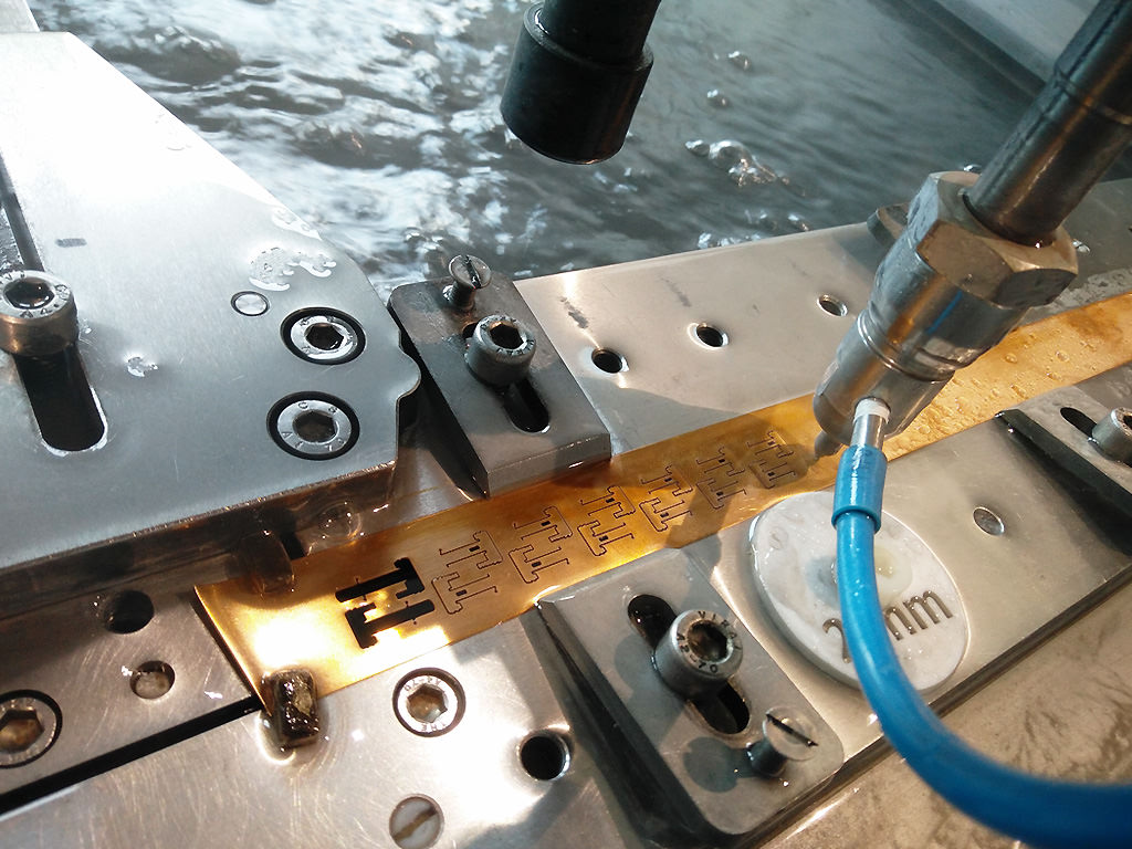 Spezialisten für Mikro-Wasserstrahlschneiden zur Herstellung von Bauteilen aus allen Materialarten (Stahl, Aluminium, Titan, Kupfer, Magnesium, Kohlefaser, Verbundwerkstoffe, Kunststoffe, Gummi, Silikon usw.) mit Dicken von 0,05 mm bis 10 mm und Toleranzen von bis zu ±0,01 mm.
